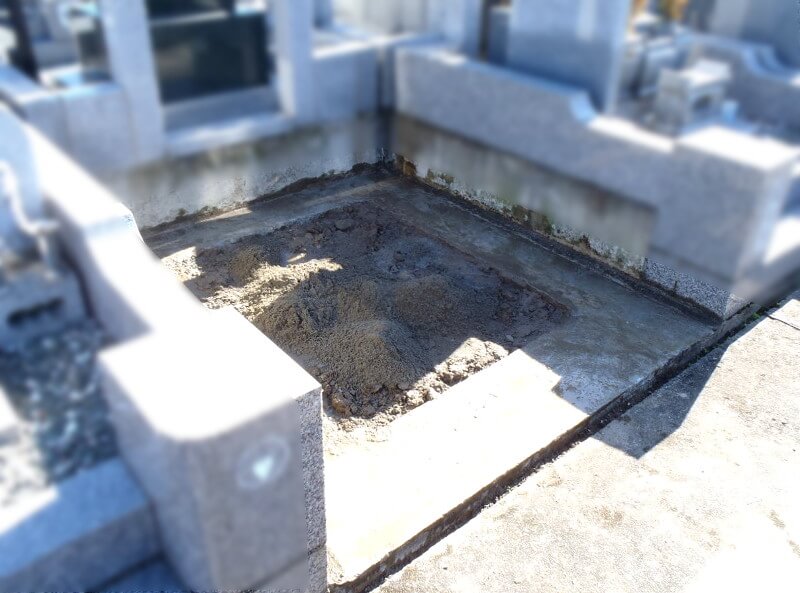 加須市にて、外柵まで施工されたお墓のお墓じまい工事。30年ほど前にお世話になっていたお寺様の墓地にて