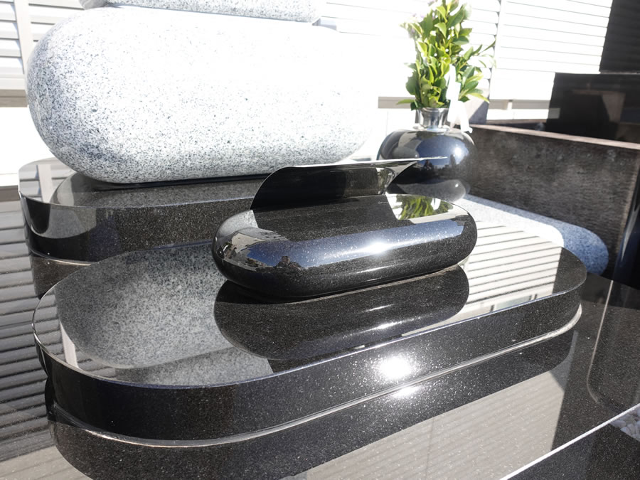 お客様が気に入ってくださった通りの、白と黒のコントラストが美しく、柔らかさを感じさせる素敵なお墓になりました。